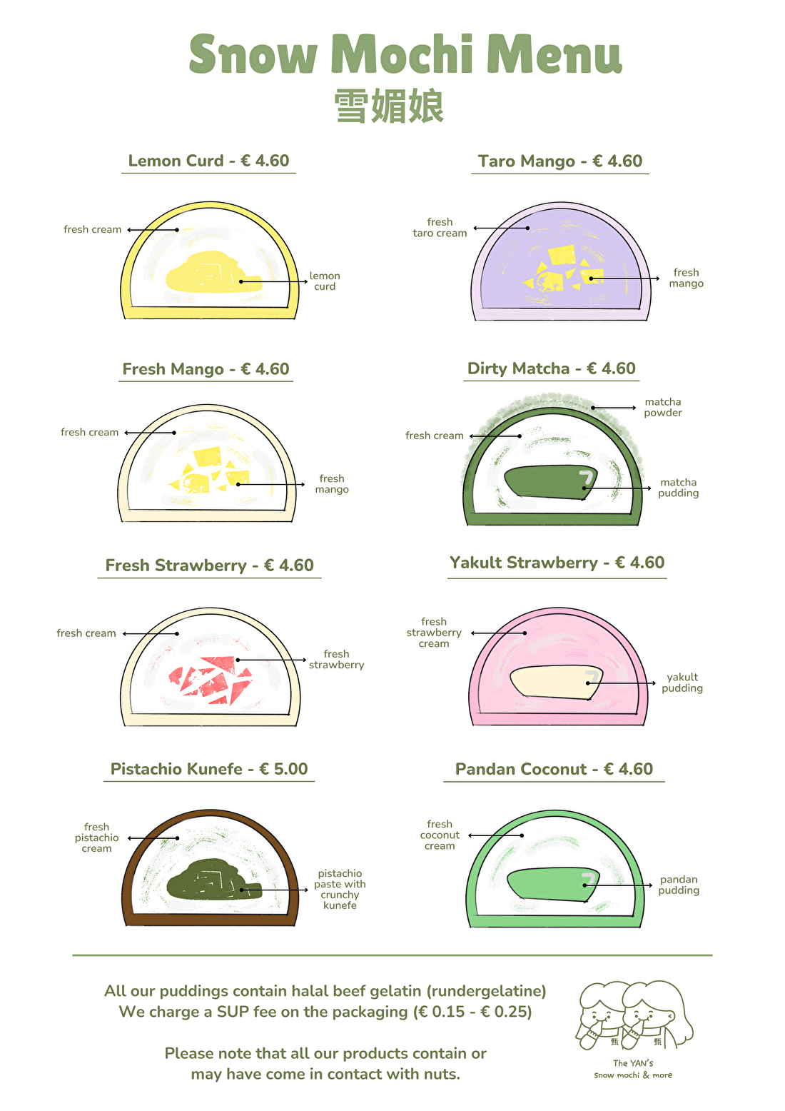 At The Yans, we work with seasonal fruits, which means some of our mochi flavors rotate according to what’s fresh and available. The menu below is valid till May 31.
